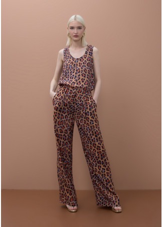 Top de cuello redondo con un vibrante estampado animal. Confeccionado en tejido ligero ideal para climas cálidos. Diseño recto que proporciona comodidad y estilo. Perfecto para combinar con tus looks más atrevidos.